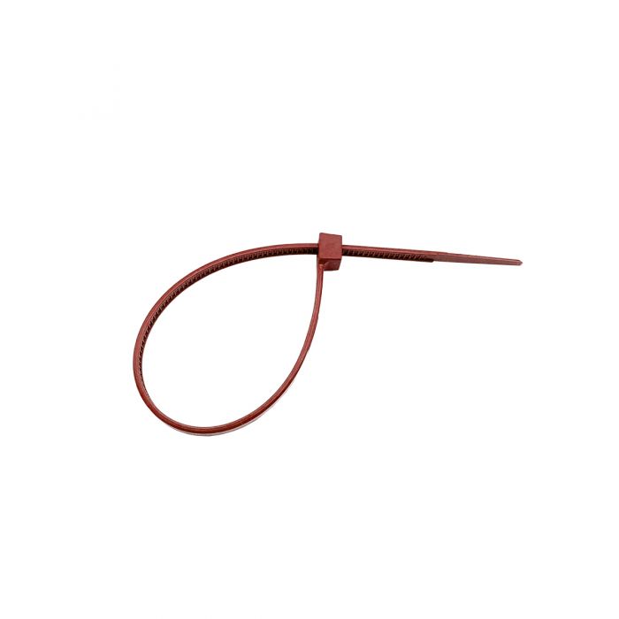 A abraçadeira nylon (Pack 100 Uni.) encontra-se disponível em diferentes tamanhos. As braçadeiras são compostas por material detetável.