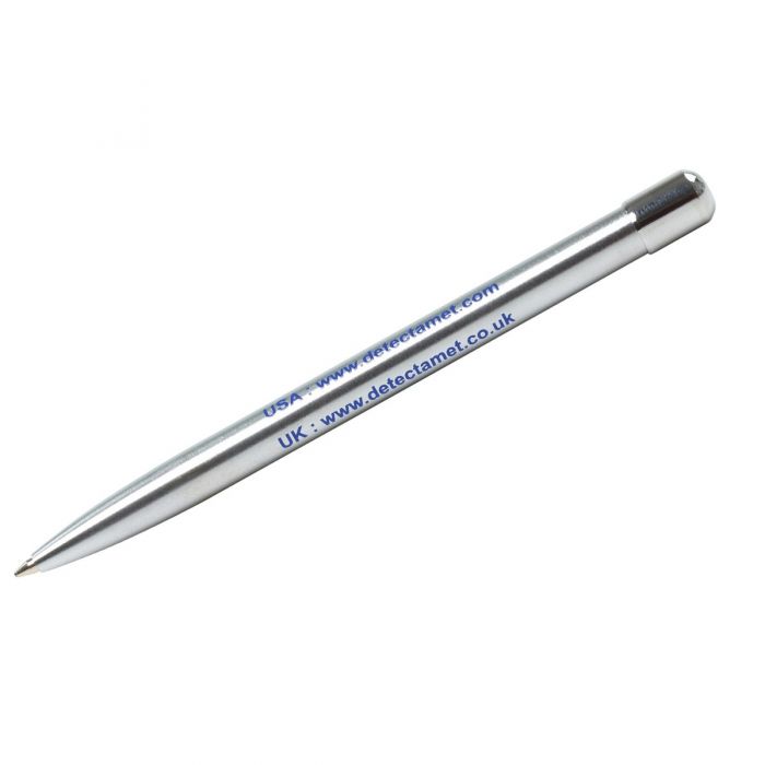 A caneta de metal (Pack 50 Uni.) disponível (com clip, sem clip ou com presilha) é composta por metal detetável e visível em raio-x, material resistente e corpo robusto.