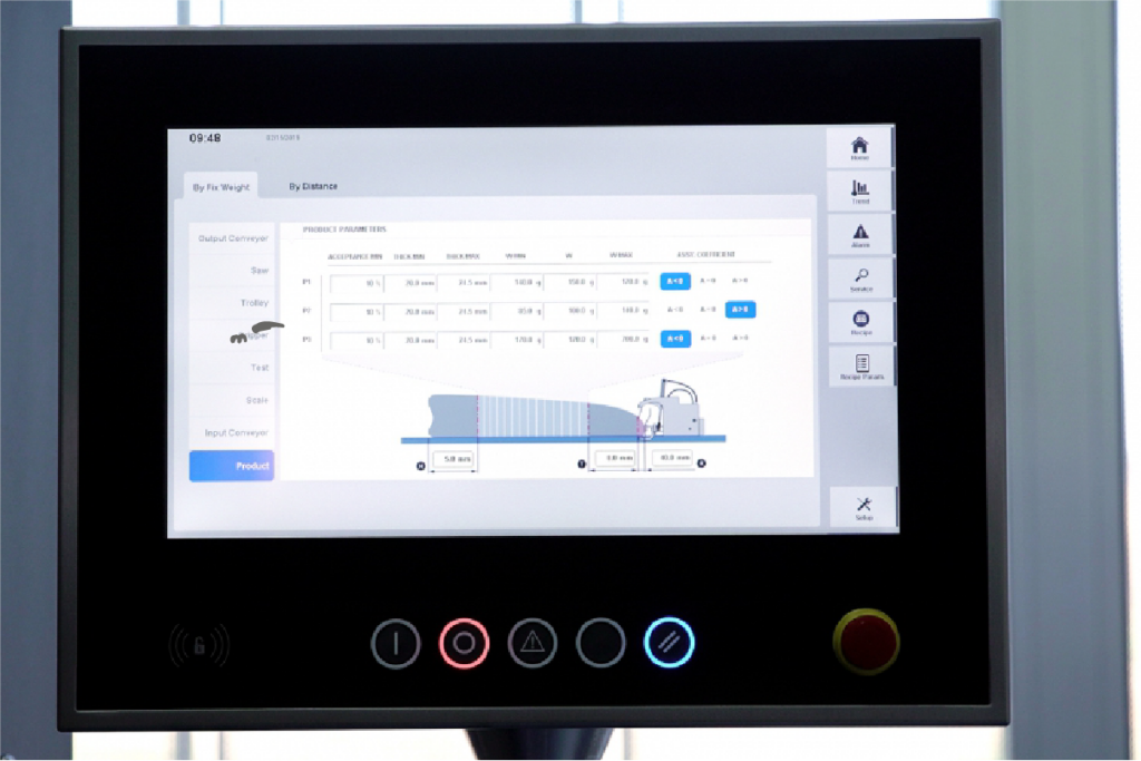 A Serra de Corte Automático com Controlo de Peso – PW-SAW é uma máquina para cortar carne, peixe e queijo. O corte é realizado em peças com e sem osso, congeladas ou frescas. Um equipamento sofisticado, que digitaliza o produto e corta de acordo com os padrões introduzidos. Com software de reconhecimento inteligente de produto para otimizar o corte, homogeneizar o peso das peças e minimizar o desperdício. A máquina pode ser lavada integralmente, entre turnos de produção ou na fase de alteração de produto. Uma solução de corte automático que lhe dá a garantia de qualidade e perfeição que procura.
